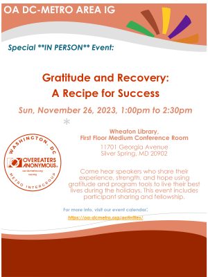 Activities sponsored by the DC Metro Area OA Intergroup or other Overeater Anonymous service bodies.